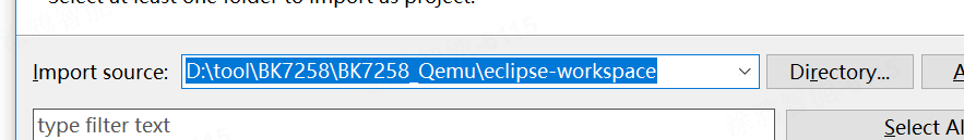 2. 打开eclipse.exe(D:\tool\BK7258\BK7258_Qemu\eclipse),导入工程,环境搭建,如下: