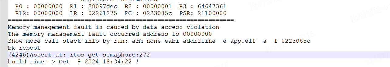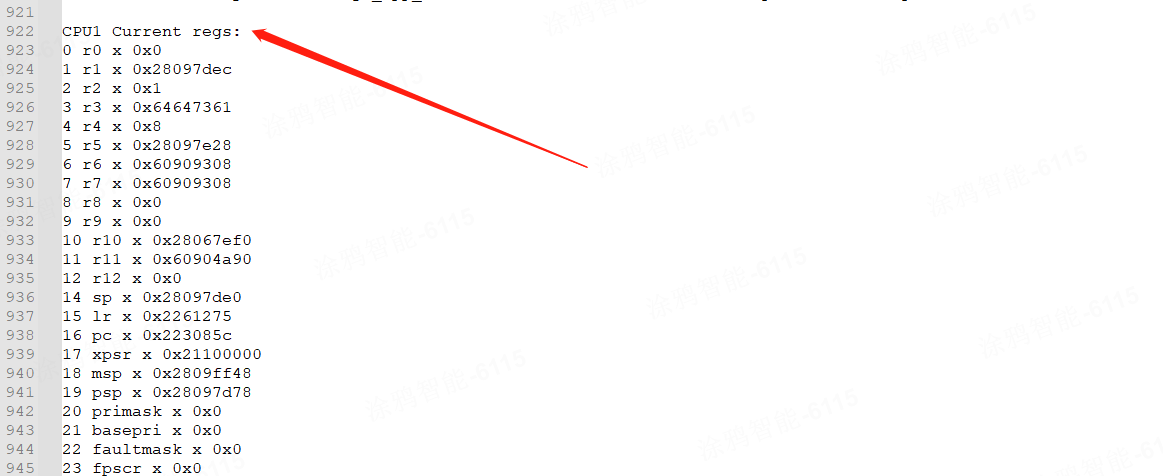 Show more call stack info by run: arm-none-eabi-addr2line -e app.elf -a -f 0223085c,在这里往上找最接近的Current regs,如果是:CPU1 Current regs(那么就是死在了CPU1),如果是CPU0 Current regs(那么就是死在了CPU0)