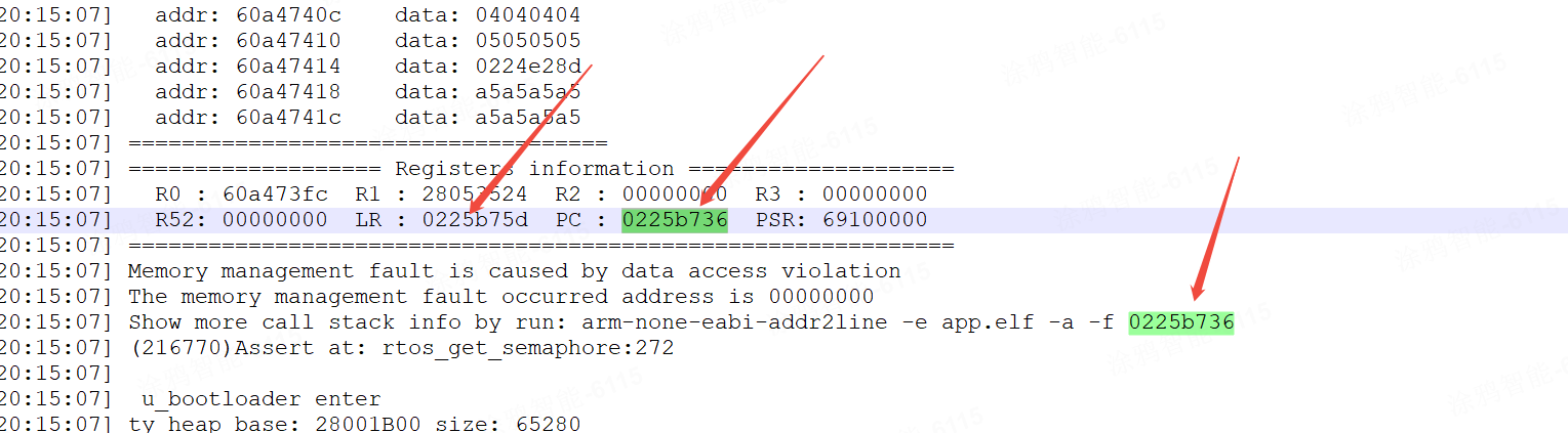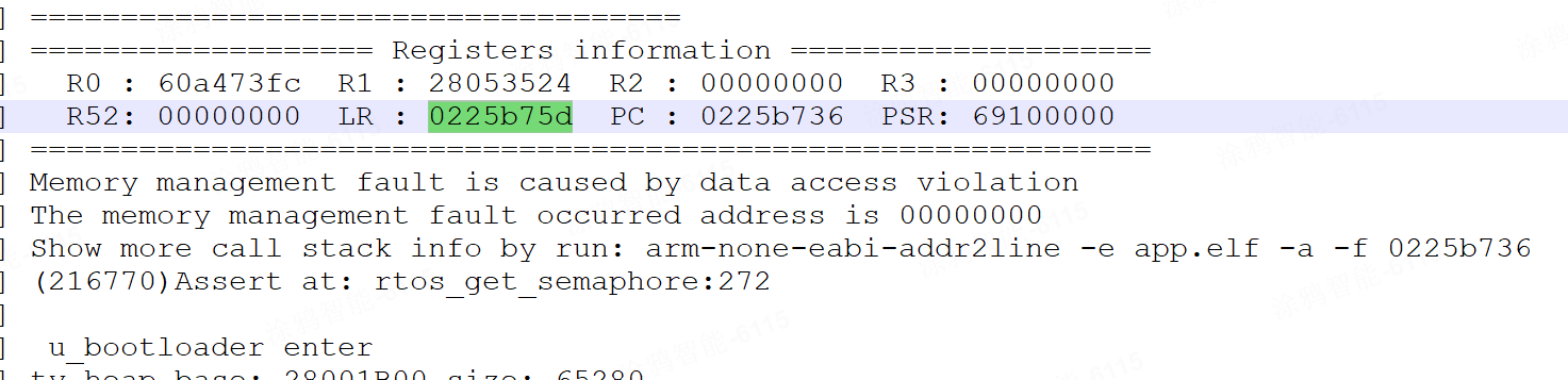 2.函数调用: LR的值是 0225b75d,这个地址比PC的值 (0225b736) 大,意味着当前正在执行一个函数,而这个函数是被来自 0225b75d - 2 或 0225b75d - 4(取决于Thumb模式)位置的代码调用的。函数执行完毕后应该返回到 0225b75d。