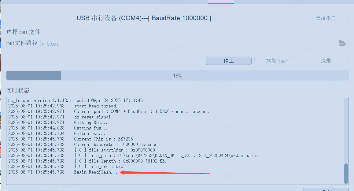 4.回到主界面,点击读取flash,然后重启设备,会有进度条出现: