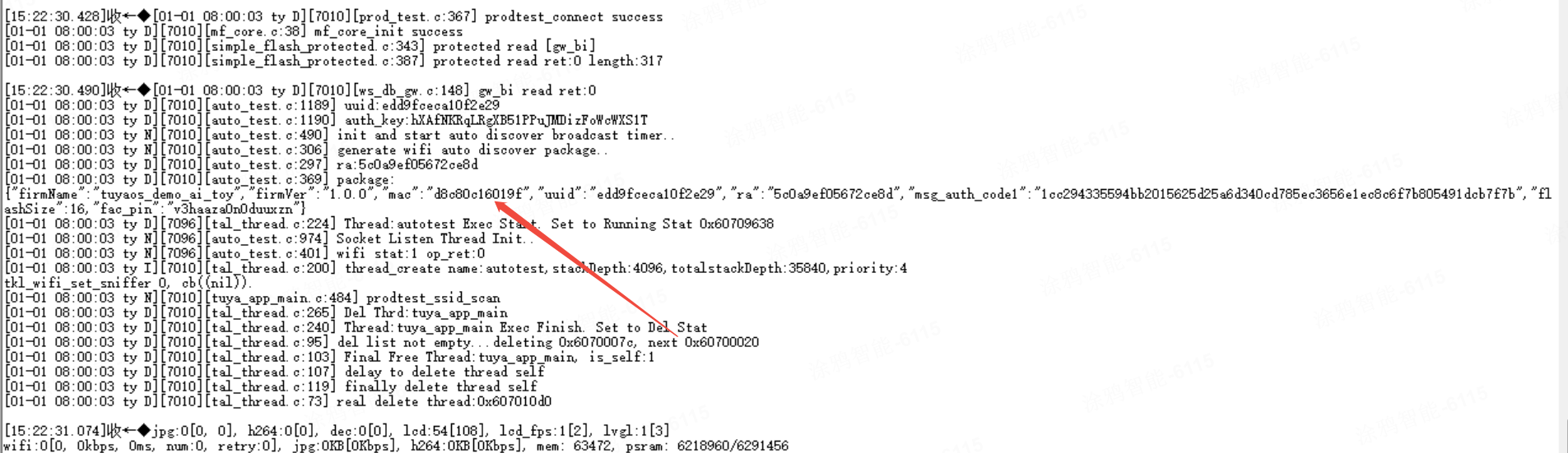 5. 在设备的LOG里找到设备的MAC地址(搜关键字:mac),如下: