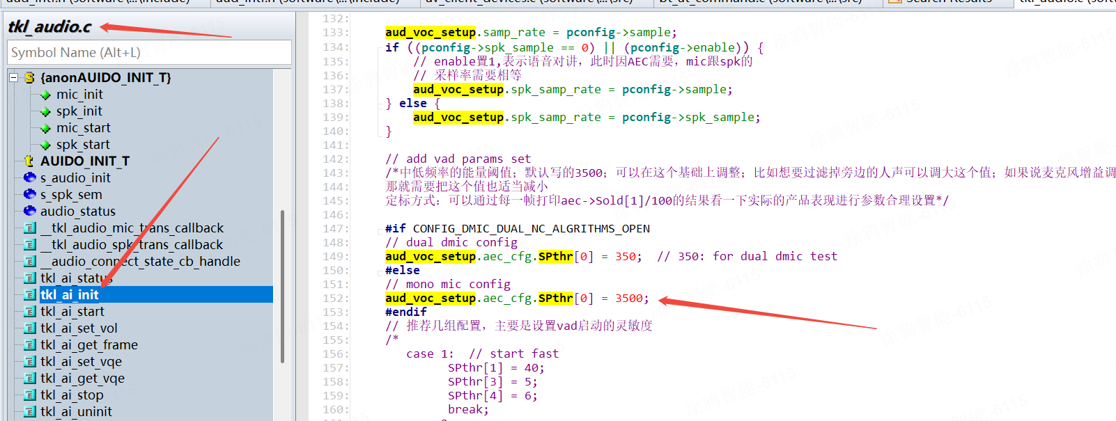 SPthr [6]~SPthr [13](VAD 能量阈值辅助参数) | 这些参数是更精细的能量判断标准,用于补充基础阈值(SPthr [0]),通常与不同频段、时间窗口或能量比例相关 |