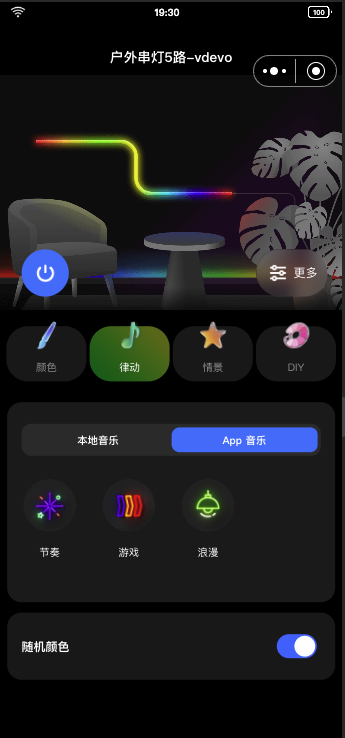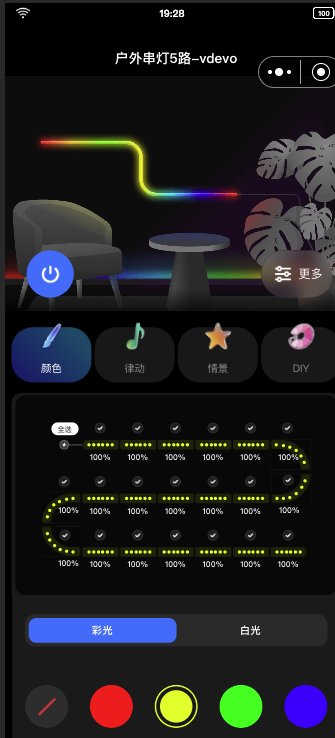 colour_data、白光亮度 bright_value、白光色温 temp_value本模板主要支持 五路 灯串(彩光模式),其他路数可按逻辑自行适配。