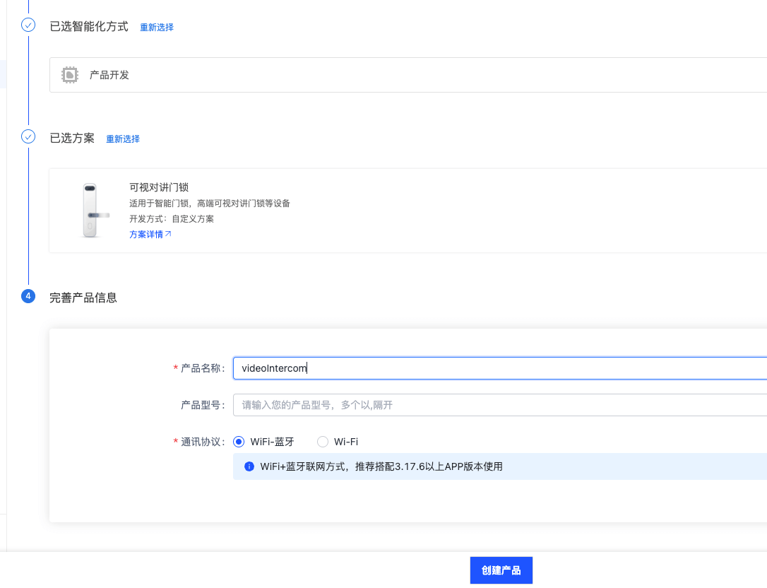 🎉 在这一步,成功完成创建了一个名为 videoIntercom 的可视对讲门锁产品。