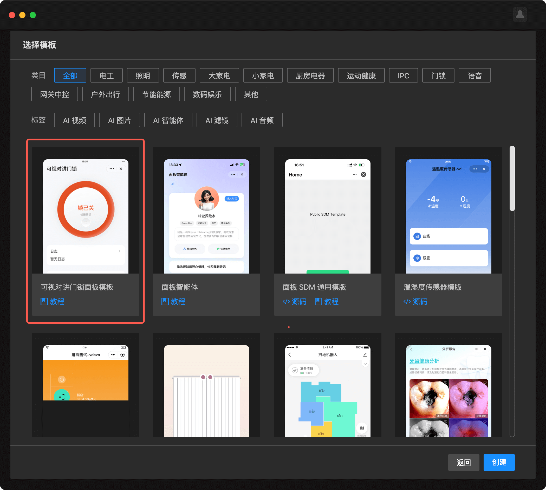 这部分在 Tuya MiniApp Tools 上操作,打开 IDE 创建一个基于可视对讲门锁模板的面板小程序项目。