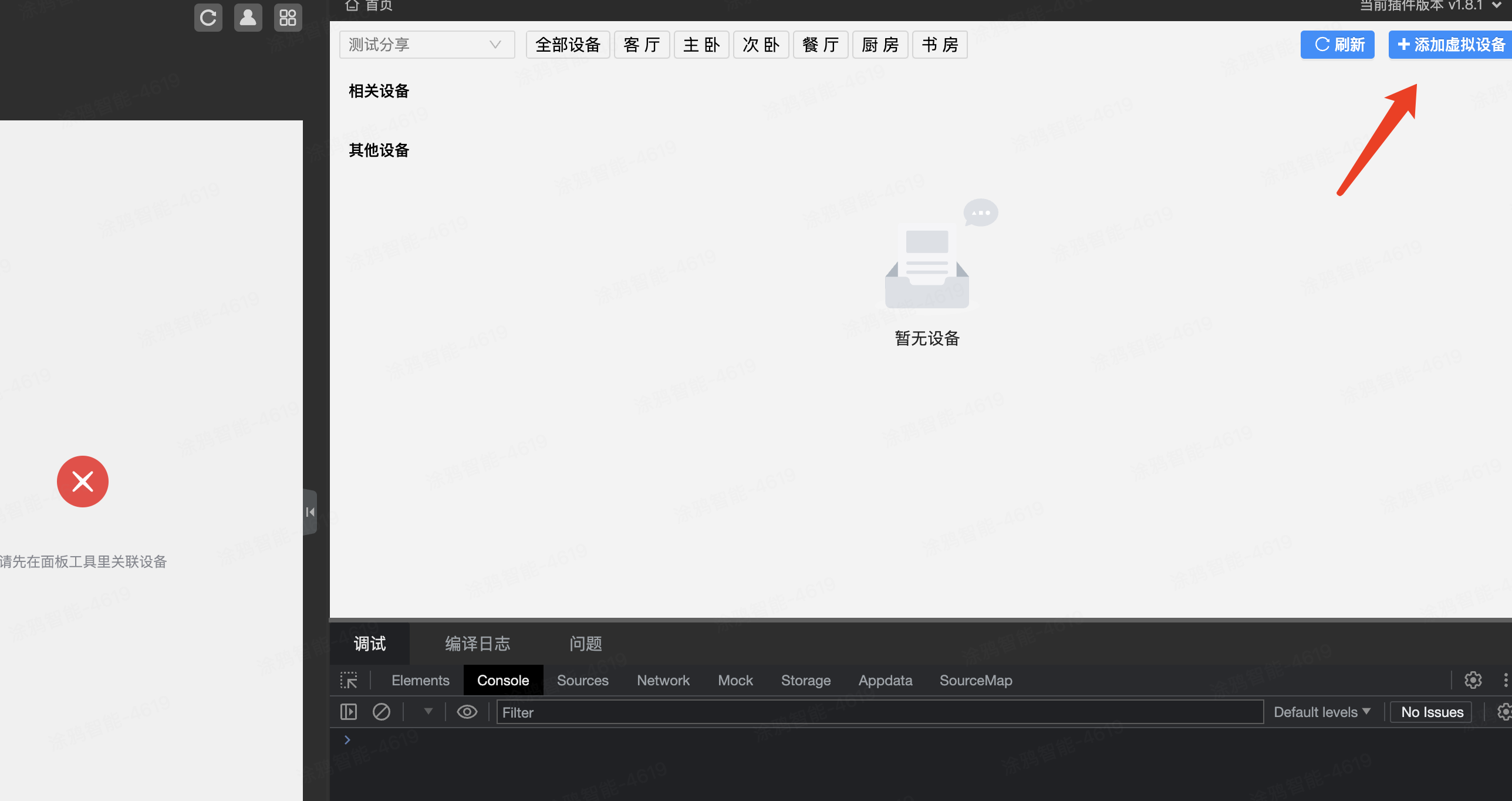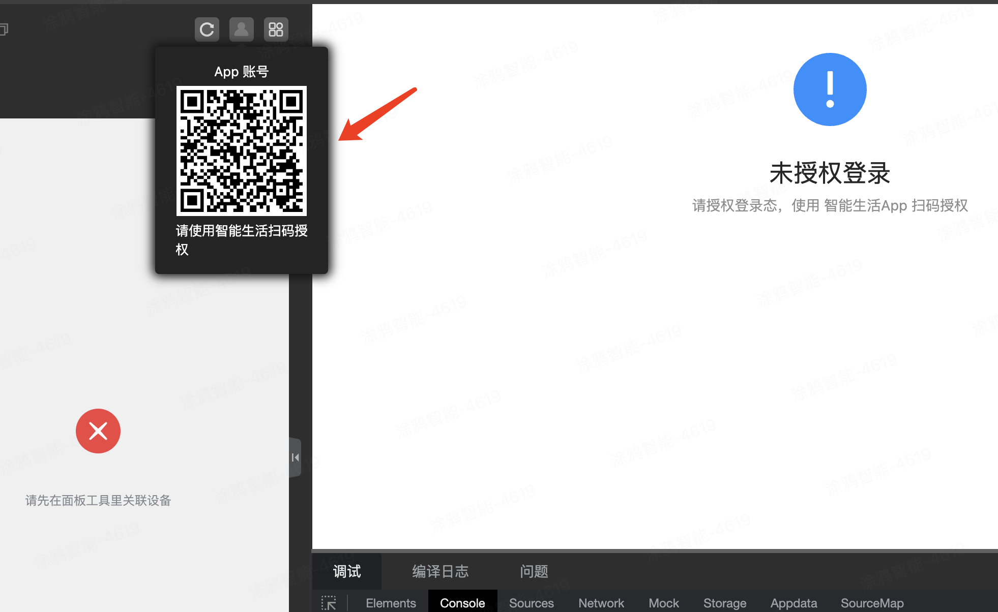 在使用虚拟设备前,请先确认已授权登录态,单击右上角登录,使用 智能生活 App 扫描二维码授权登录。
