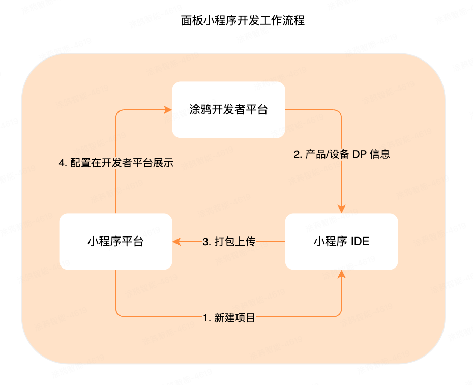 面板小程序的开发主要围绕开发者平台、小程序开发平台、小程序 IDE 之间进行,整体流程参考下图: