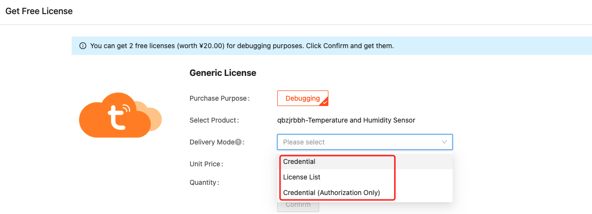 This approach allows you to complete both firmware flashing and module authorization by using the Cloud Module Burning Authorization Platform. This platform is integrated with the software for flashing firmware to Tuya standard chip. Before flashing firmware, you need to upload the firmware binary file to the Tuya Developer Platform as instructed and get the license (also known as the credential).