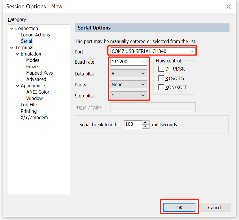 | Flow control | None | Do not enable, otherwise there may be no output |