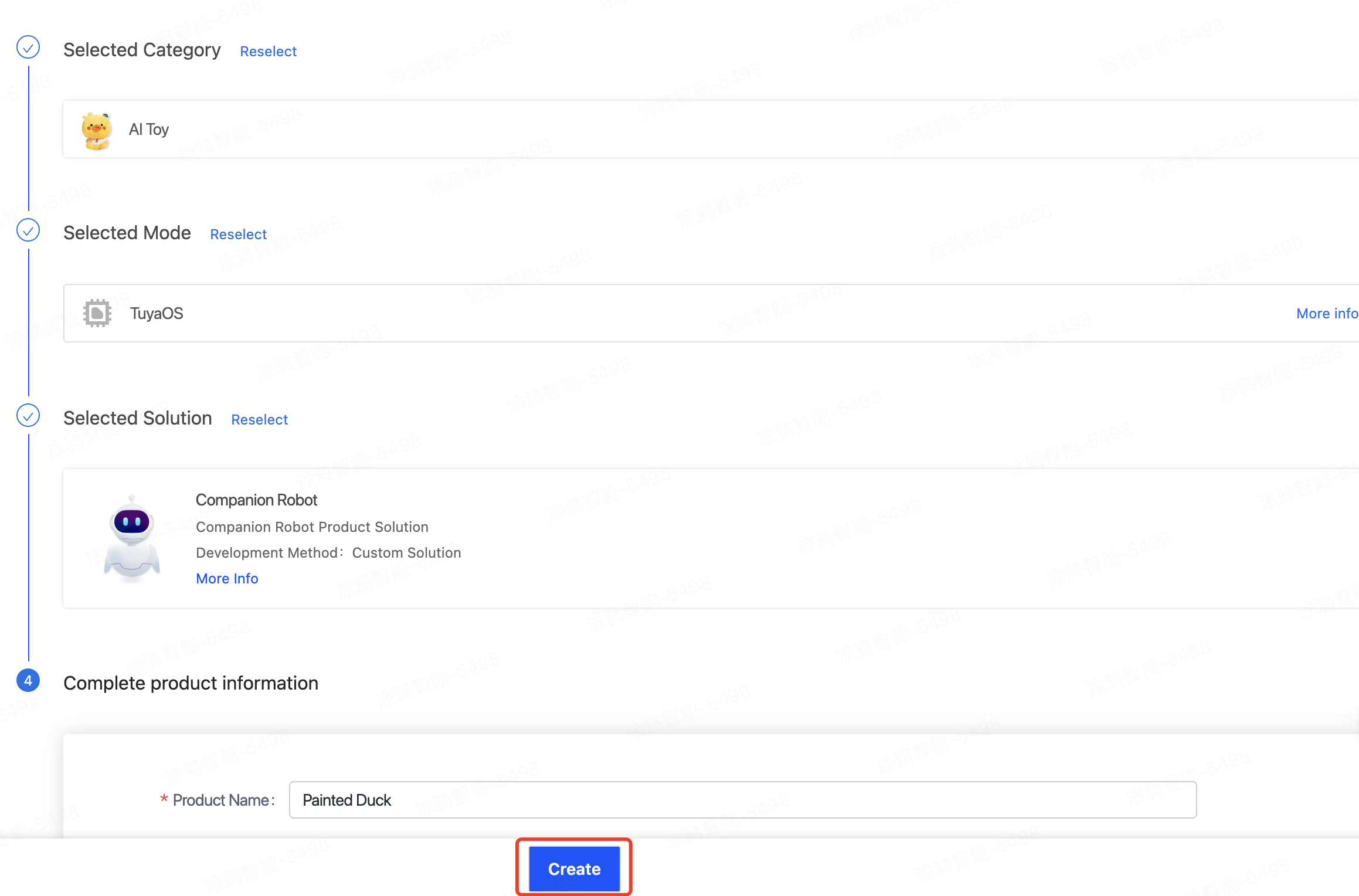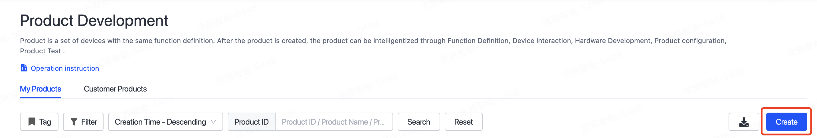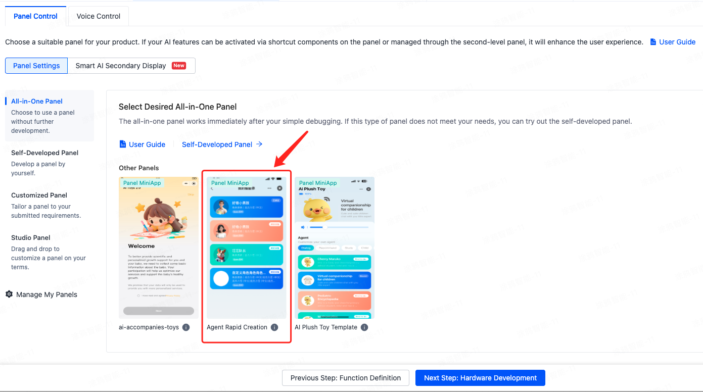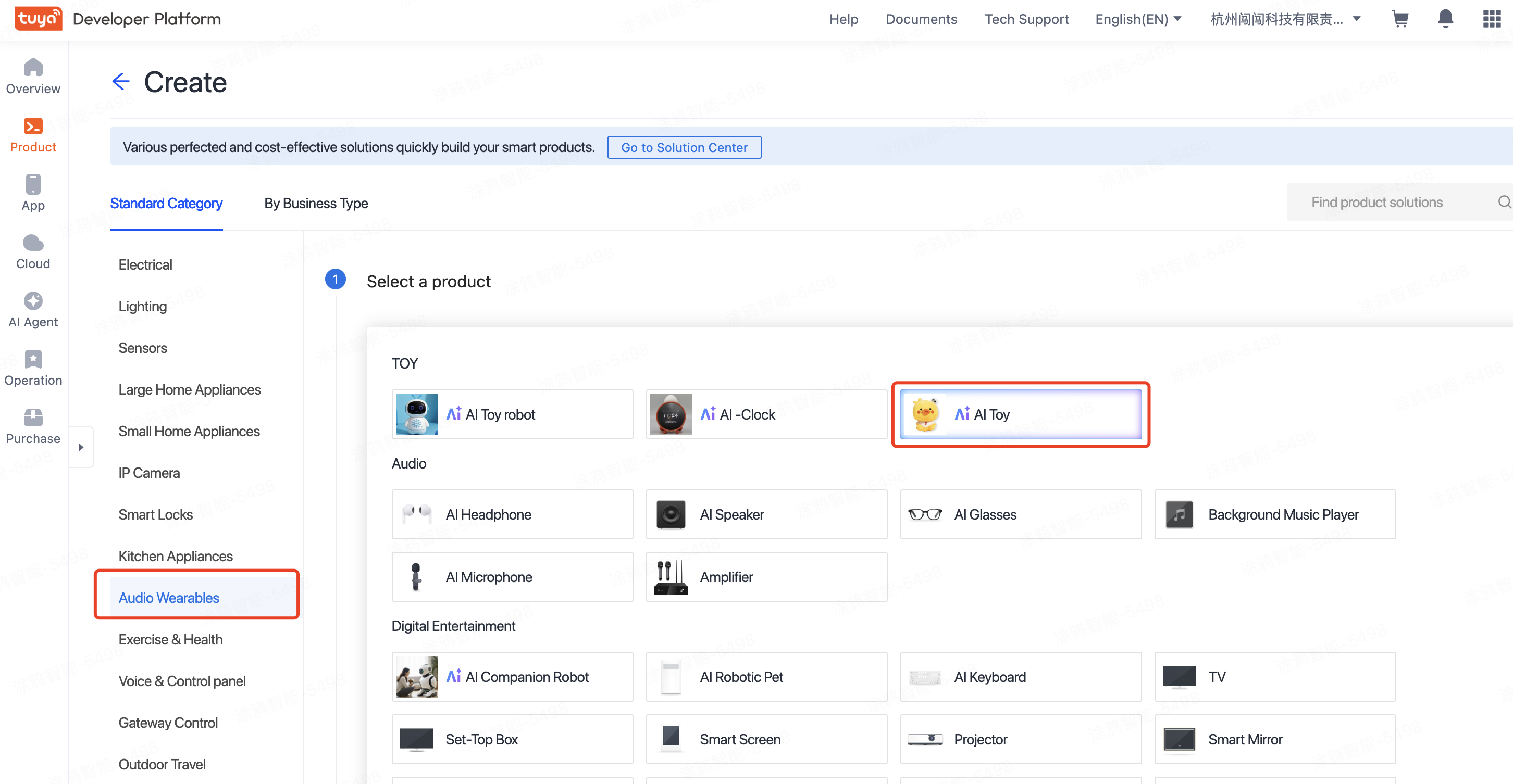 A product defines the data points (DPs) and agents carried by the panel and the device. Before you start panel development, create an AI plush-toy product, define its DPs, associate the required agents, and then implement these DPs in the panel.