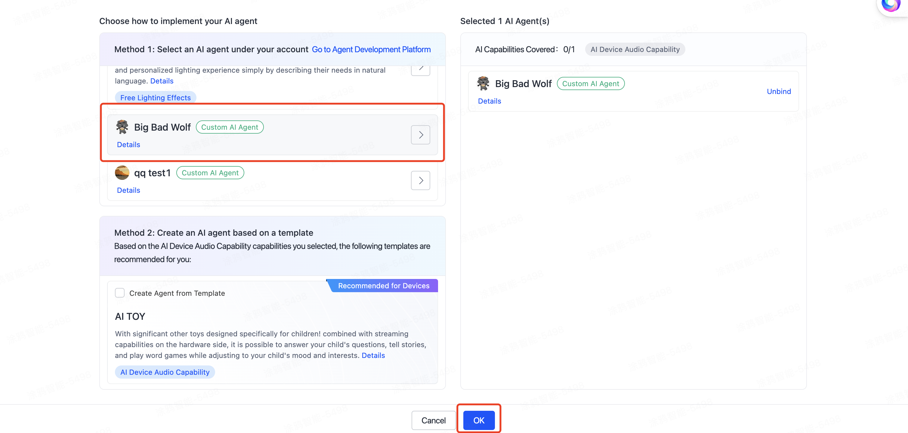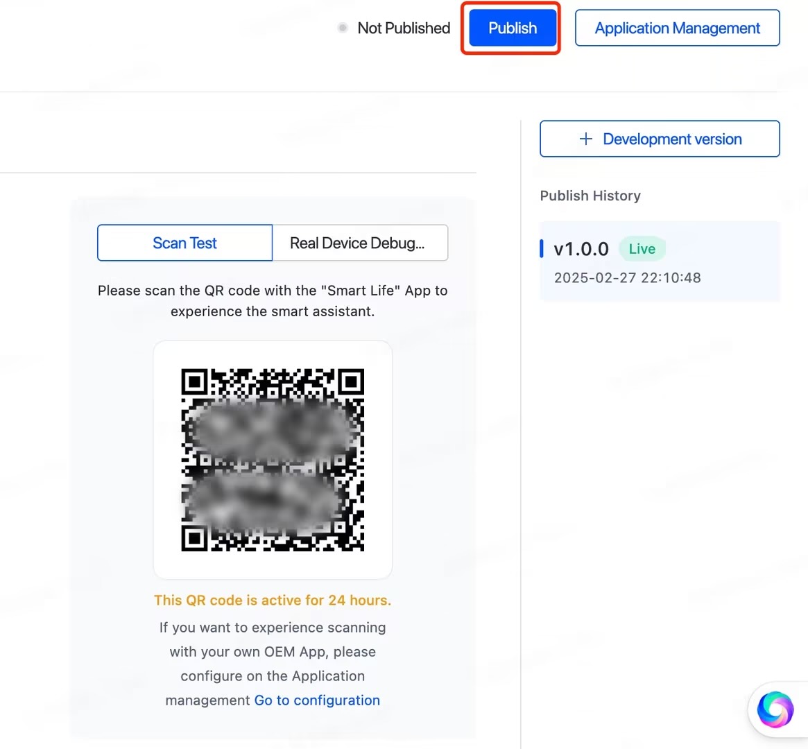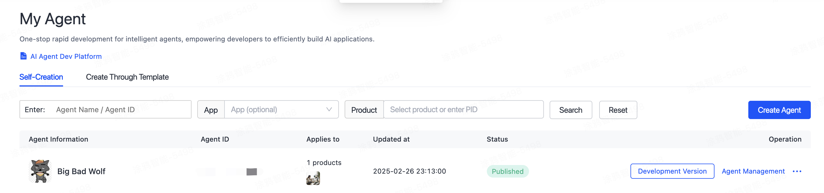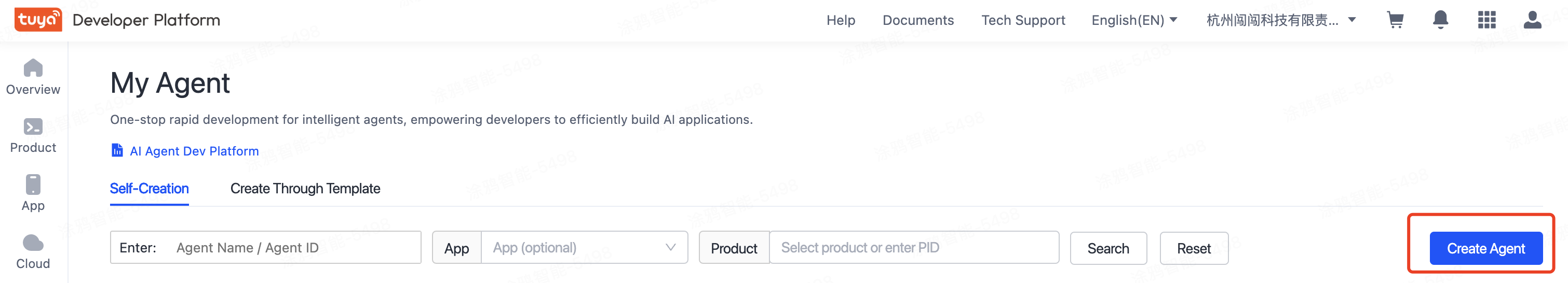 After the Smart Life OEM app and optional smart devices are ready, create an agent on the AI Agent Platform.